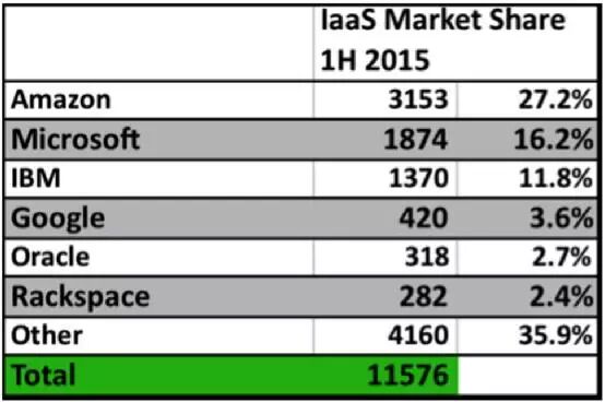 图3:2015年上半年IaaS市场份额(来源:Wikibon 2015)