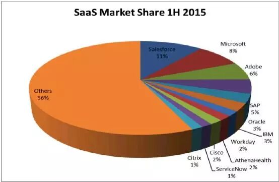 图1:2015年上半年SaaS市场份额构成(来源:Wikibon 2015)