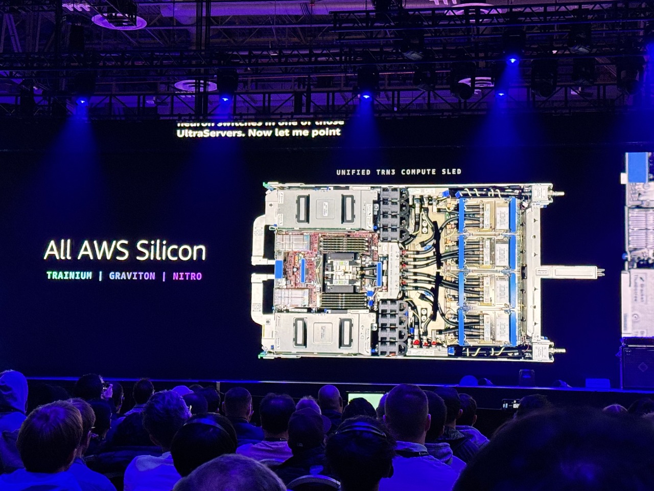 AWS Trainium 3和Amazon EC2 Trn3 UltraServers在第一天就已经发布,Peter DeSantis也做了更多细节披露。